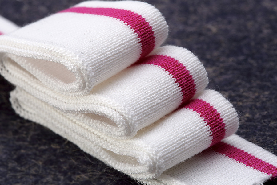 Taglio e confezionamento: dopo la finitura, il tessuto a coste viene tagliato nelle lunghezze desiderate per essere utilizzato come polsini o finiture in vari indumenti e prodotti. I polsini finiti possono essere confezionati ed etichettati secondo le specifiche del cliente prima della distribuzione ai produttori di abbigliamento o ai rivenditori.
